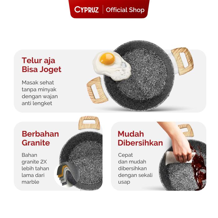 Cypruz Casserole Pan / Stock Pot White Granite Series Panci Anti Lengket Dengan Tutup