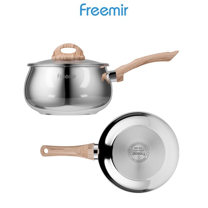 freemir Panci Stainless Steel 304 Panci Gemoy MPASI 16 cm Lebih Sehat Tutup Kaca