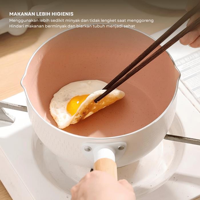 Panci Susu Alumunium Alloy 20cm Dengan Tutup Kaca dan Gagang Kayu Sauce Pan Anti