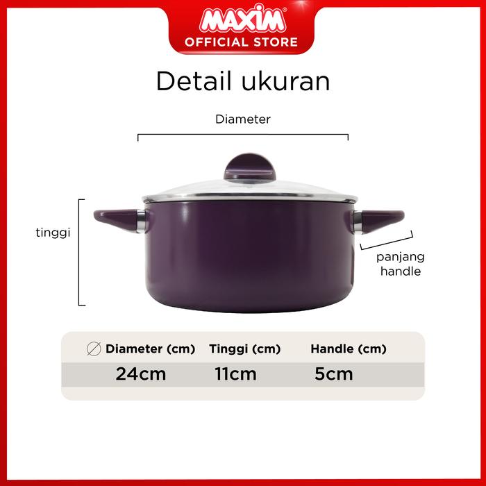 Maxim New Eleganza Purple Panci Teflon Anti Lengket 24cm Tutup Kaca