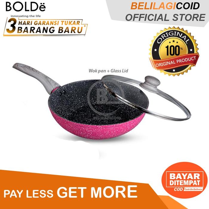 BOLDE Super Pan WOK 28 Cm Glas Lid - Black Pink Glass Masak Panci