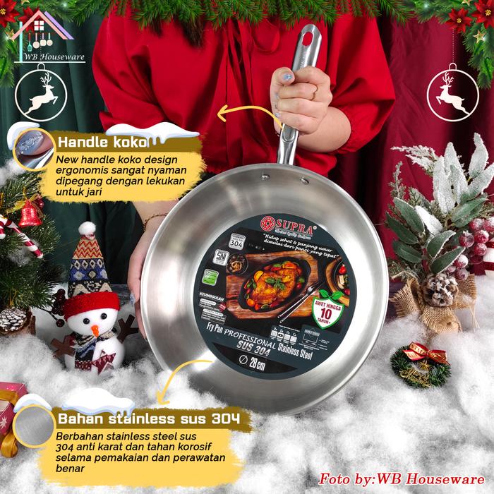 New SUPRA Panci Fry pan 28cm + tutup kaca kombinasi viliron professional series stainless SUS 304