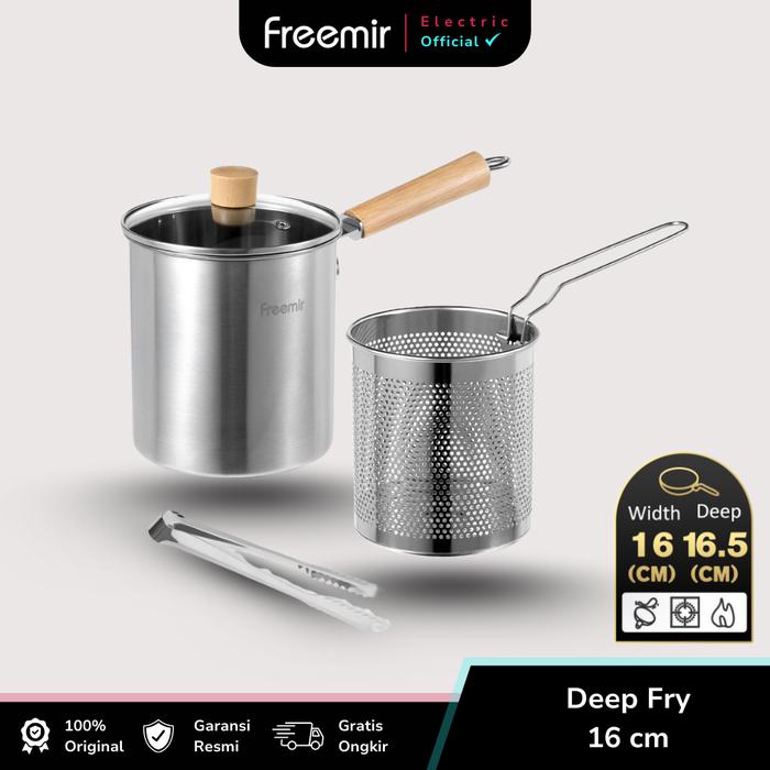 Panci Deep Fry 16 cm Stainless Steel 201 Kapasitas 2,7L Anti Lengket Gagang Kayu Kitchenware