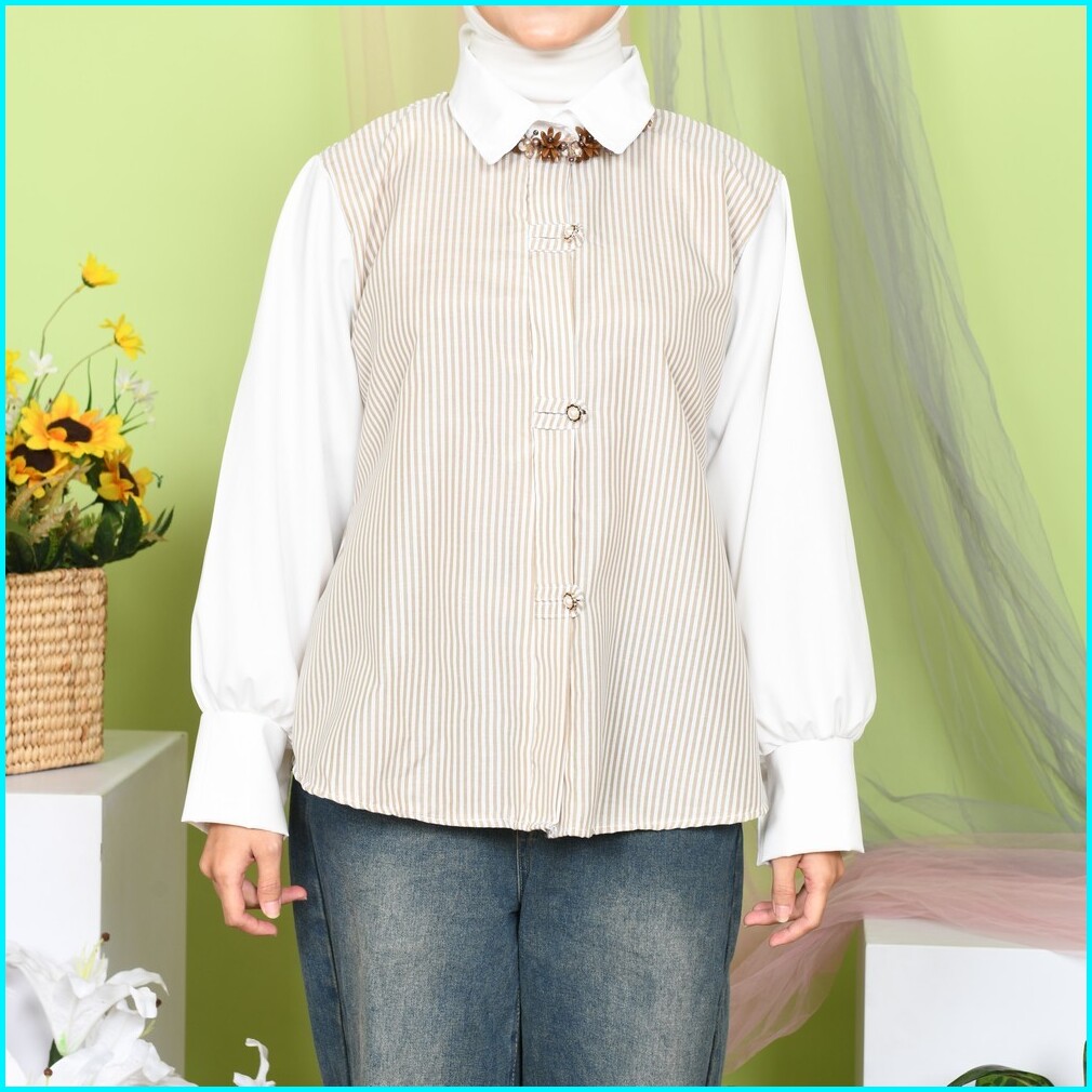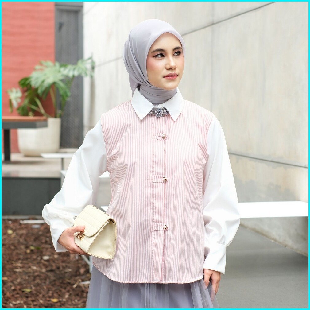 Mybamus X Syarifahkhairatunnisa Sweetiepie Blouse Kemeja Kombinasi Wanita Lengan Panjang Kekinian
