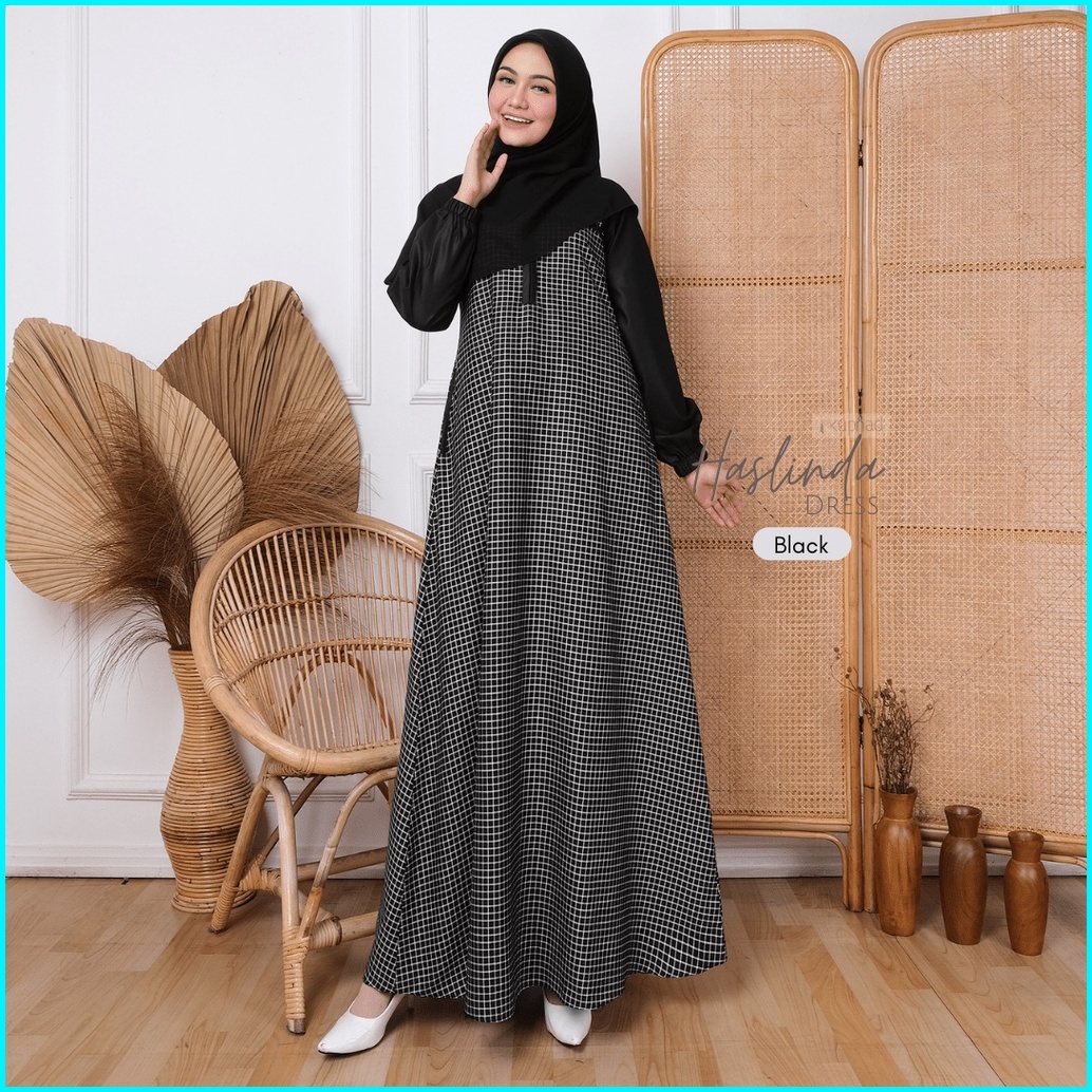 Kupnad Gamis Wanita Motif Kotak Katun Jepang Busui Friendly Adem Modern Nyaman Haslinda Dress