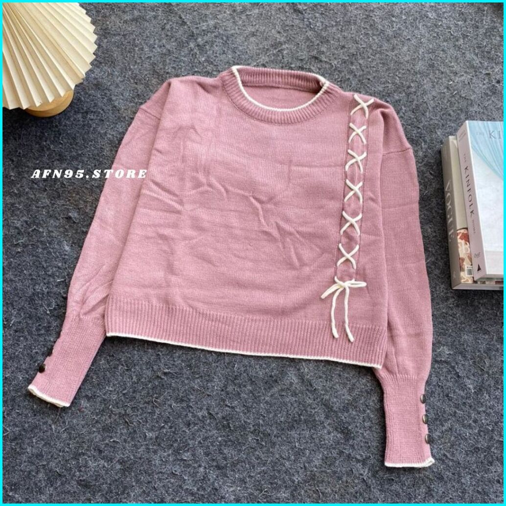 Afn95 - Blouse Wanita Lengan Panjang Rajut Knit Atasan Cewek Motif Tali Kekinian Korean Style Calista Sweater