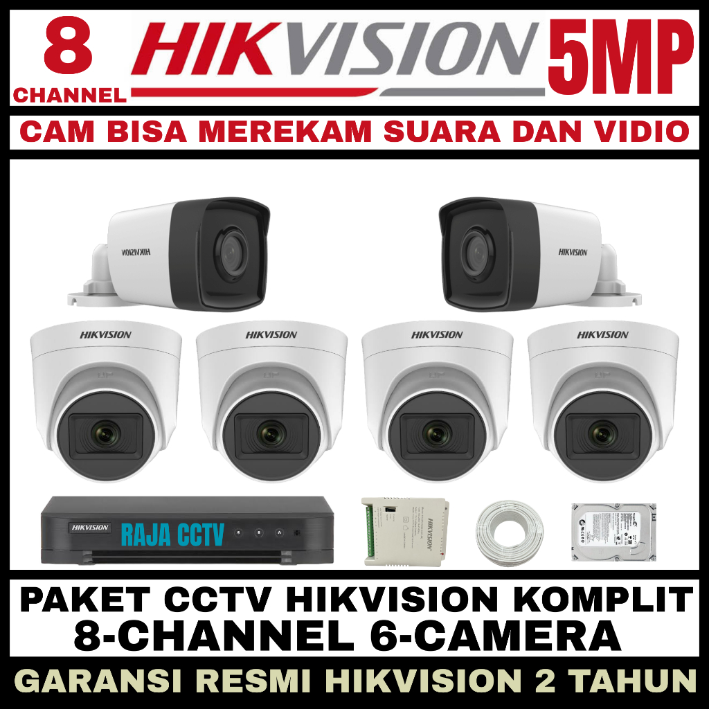PAKET CCTV HIKVISION 5MP 8 CHANNEL 6 CAMERA TURBO HD KAMERA CCTV AUDIO