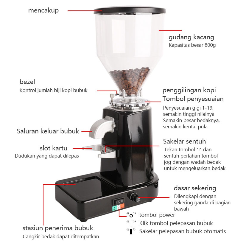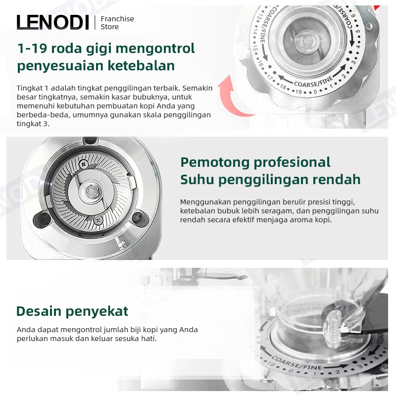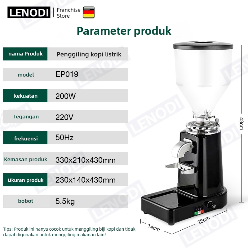 LENODI Espresso komersial Kopi Grinder Kopi Electric Penggiling Kopi Espresso Otomatis Manual Kantor Rumah, Ketebalan Da