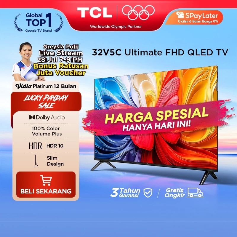TCL 32V5C QLED & IFFALCON 32S55 32 Inch Google TV FHD Dolby Audio Play/Netflix Digital Tanpa STB