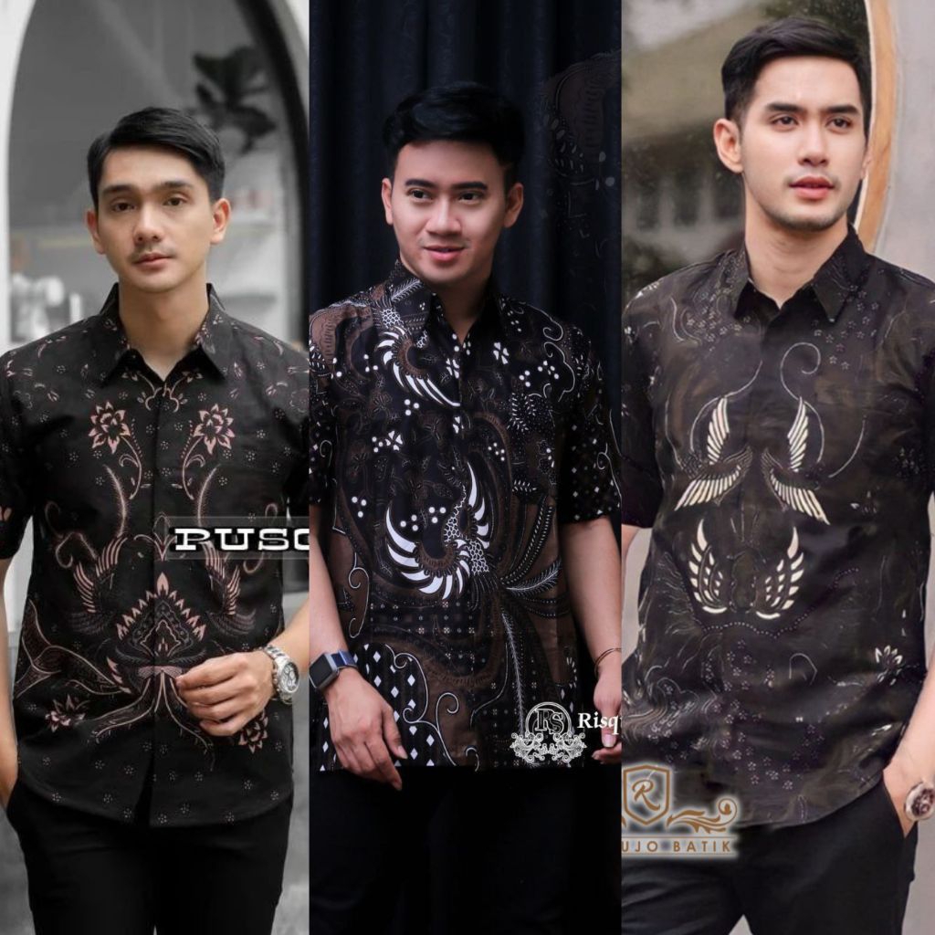 PAKET 3 PCS Kemeja lengan Pendek motif batik pria baju kondangan seragam halus
