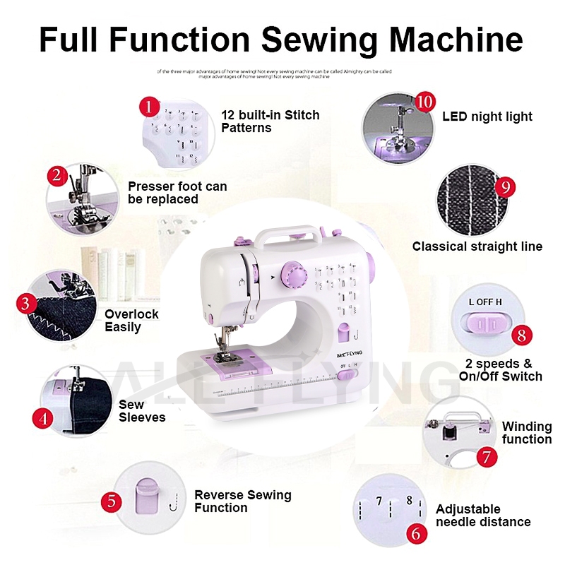 ALL FLYING rtable 505A Mesin Jahit Mini Listrik Rumah Tangga 12 Jahitan Mesin JahitMesin Listrik