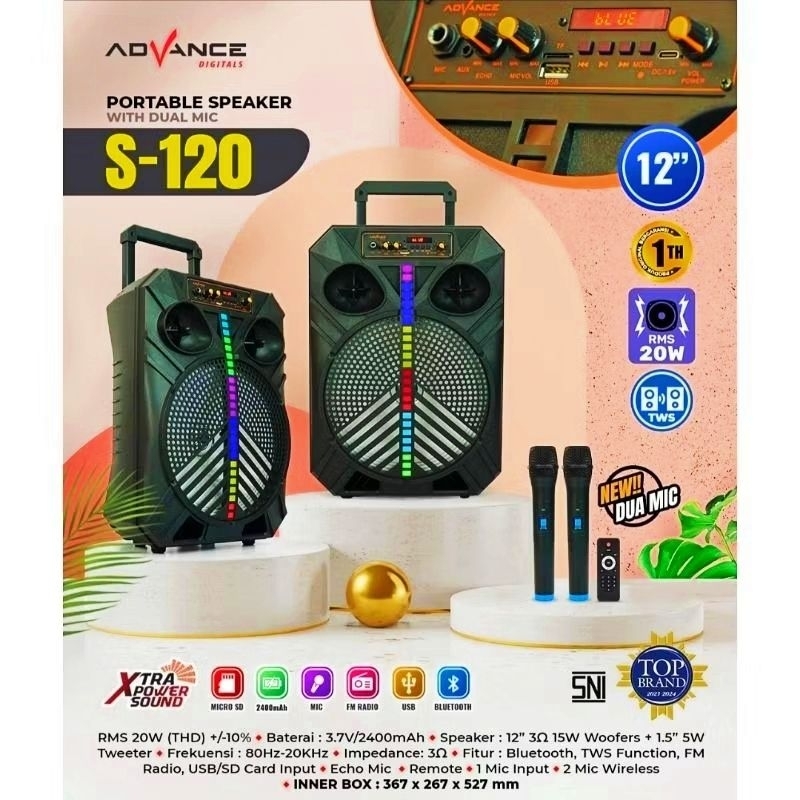 Speaker Karaoke Advance S120 Original 12 inci free mic wireless