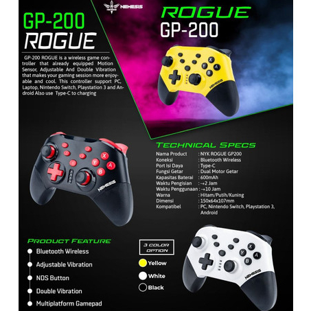 Gamepad / Stik Single Wireless Multiplatform NYK NEMESIS ROGUE GP200