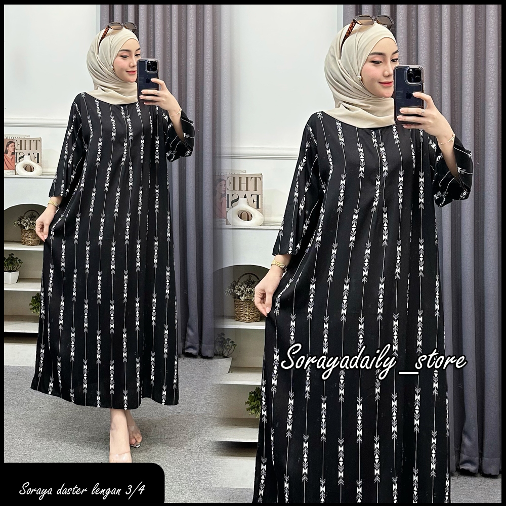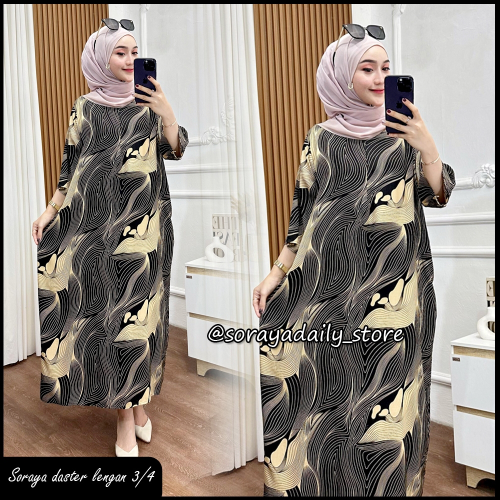 DRESS LENGAN 3/4 DASTER RAYON BUSUI JUMBO | DRESS MOTIF WANITA KEKINIAN