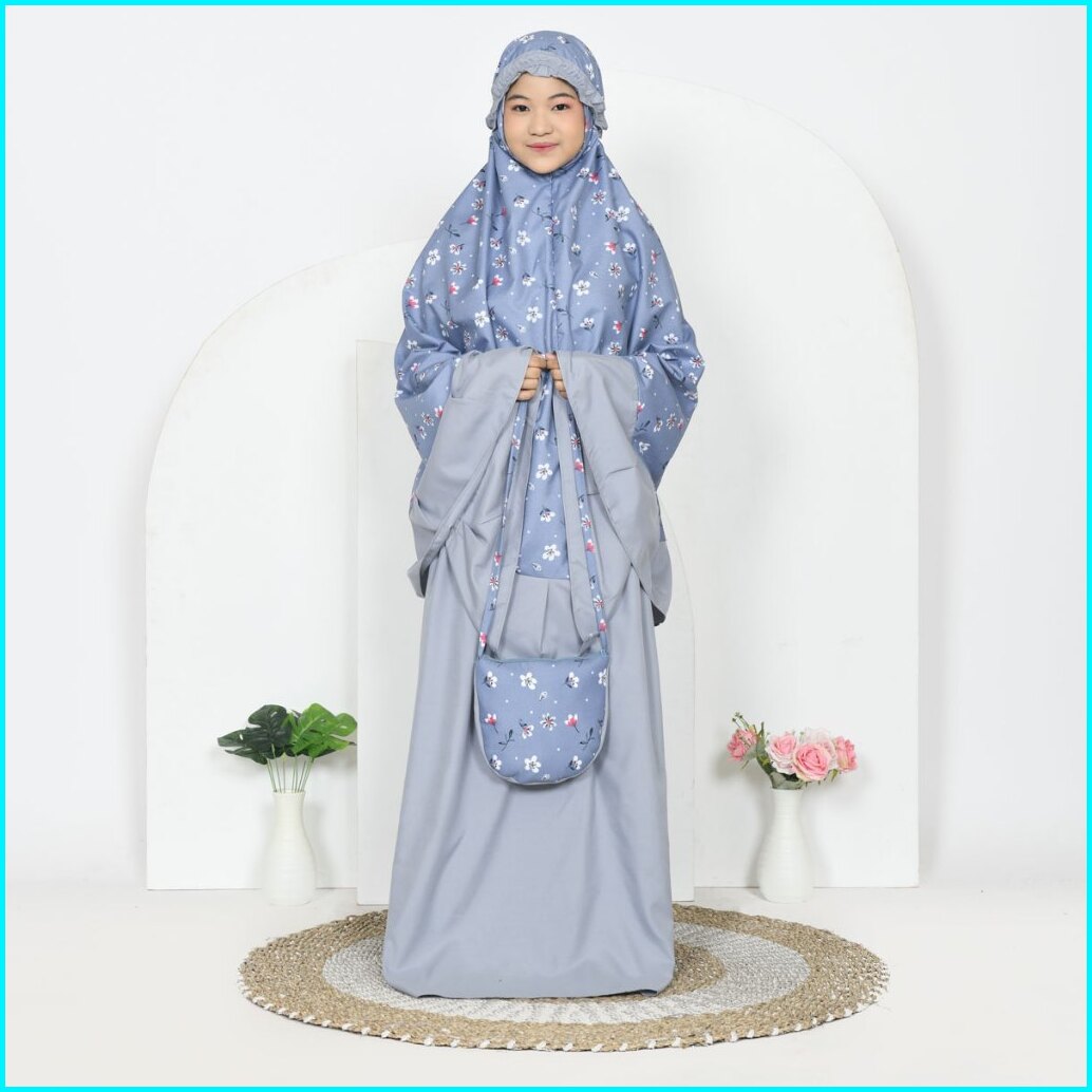 Faisal - Mukena Anak Perempuan Resleting 2in1 Usia 6-12 Tahun Katun Motif Kombinasi Polos