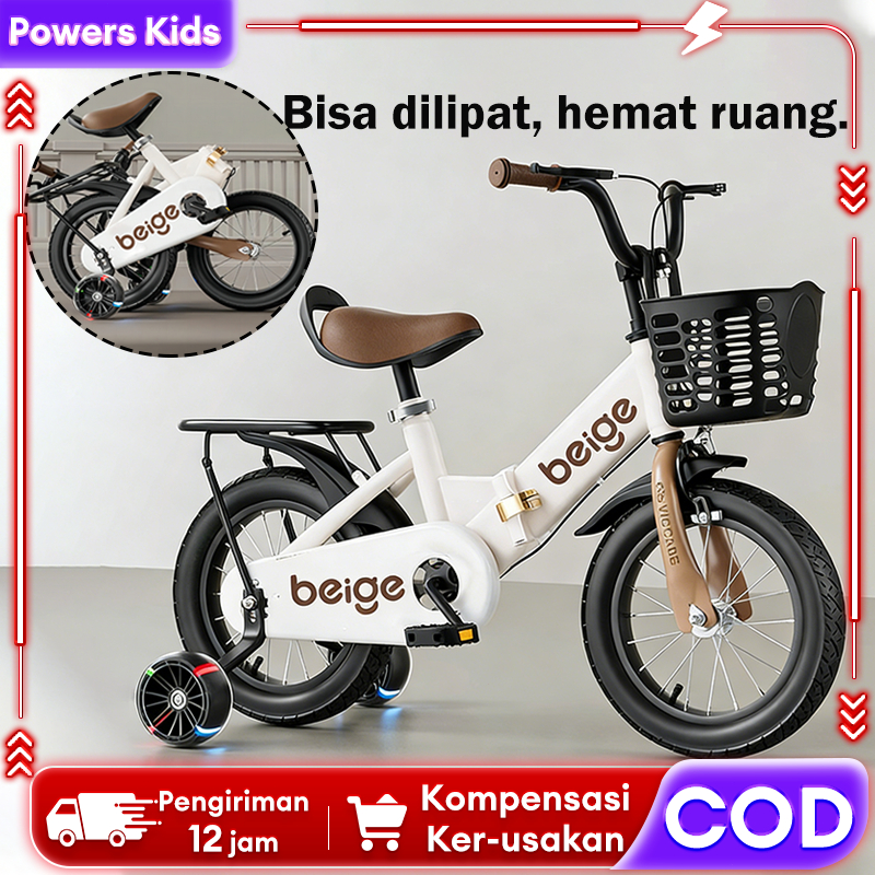 BEIGE Sepeda Lipat Anak 12 14 16 Inch - Sepeda Bayi dengan Roda Bantu Usia 2-8 Tahun