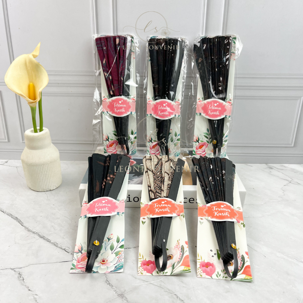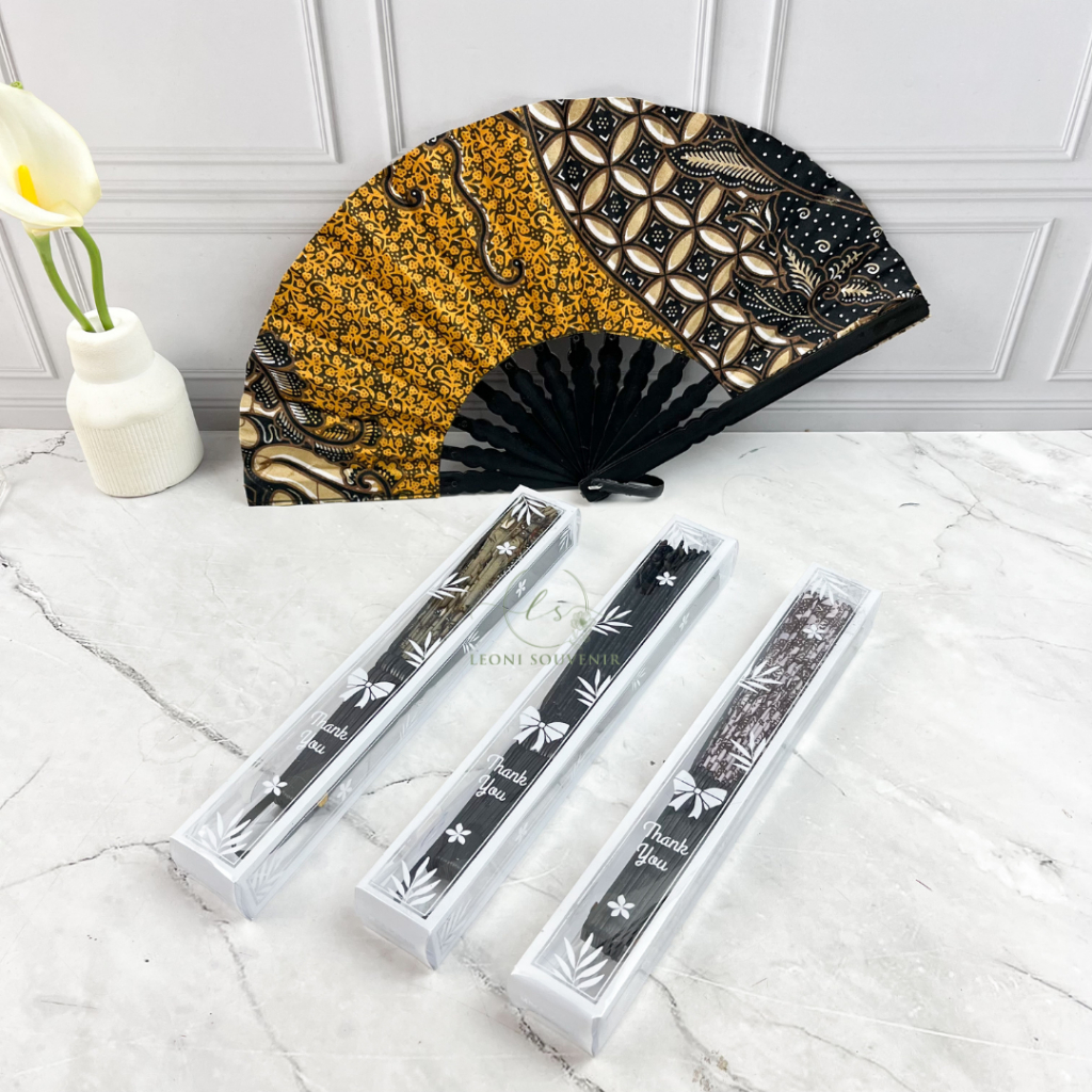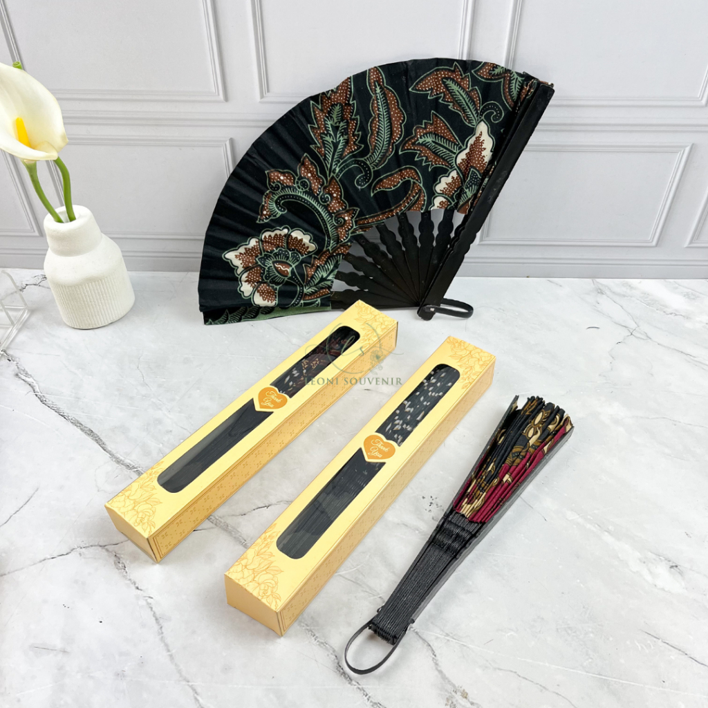 Souvenir Kipas Batik Gagang Hitam Jumbo 20 Cm Kkuningan mengkilap Box / Mika