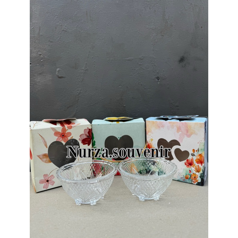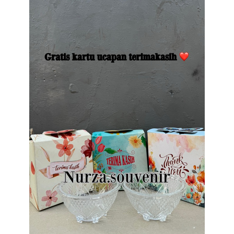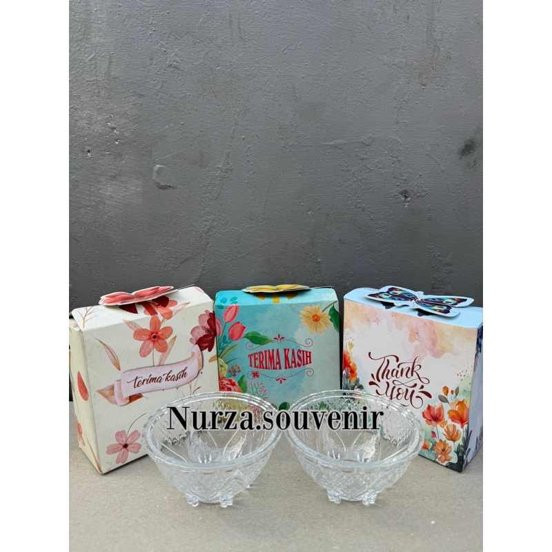 ( Isi 50pcs ) Souvenir Mangkok Kaca Krystal Kkuningan mengkilap an Box Cantik