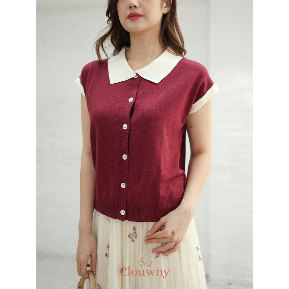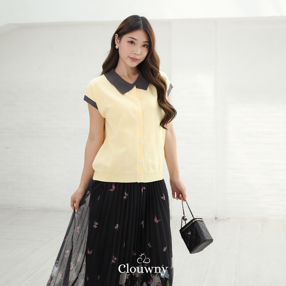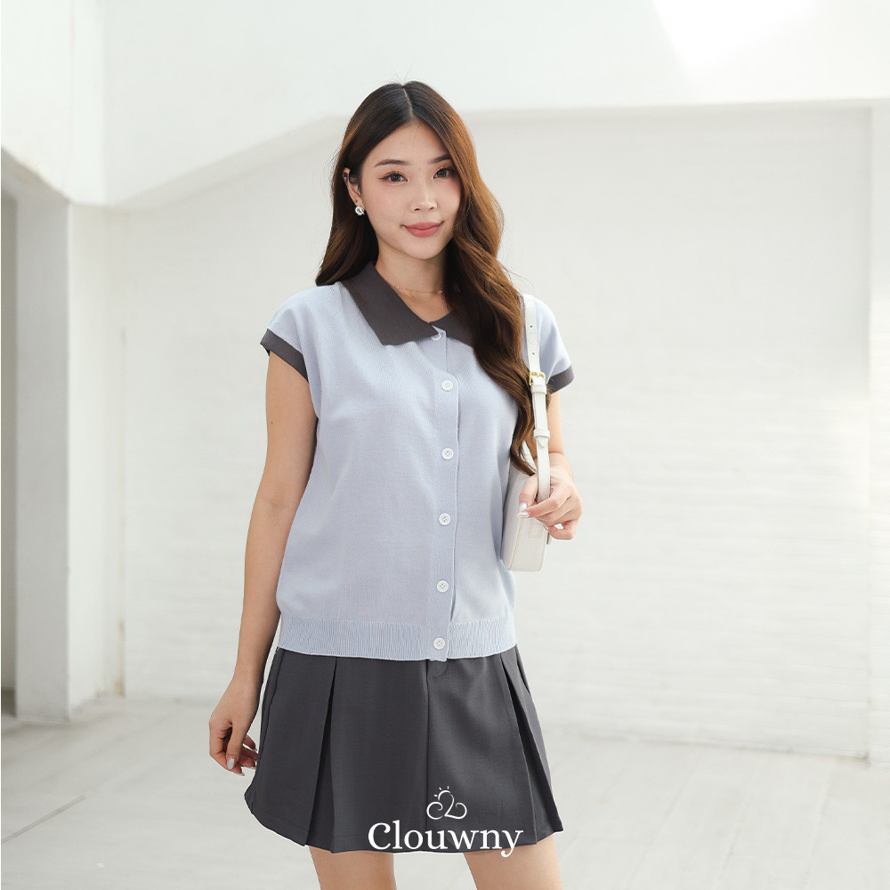 Clouwny Dava Collar Knit Top Atasan Wanita Kerah Premium Knitt Fit to XXL