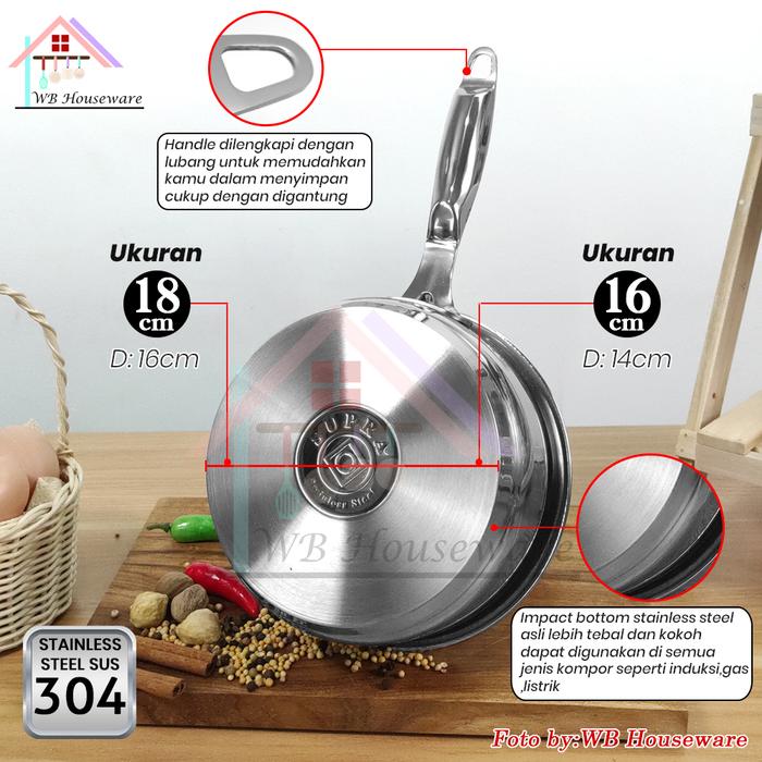 SUPRA panci Sauce pan 16/18cm Stainless Steel SUS 304 Impact bottom Professional cookware series /