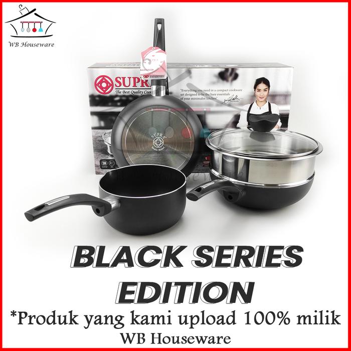 5pcs cookware set renatta alu black series / panci set supra anti lengket