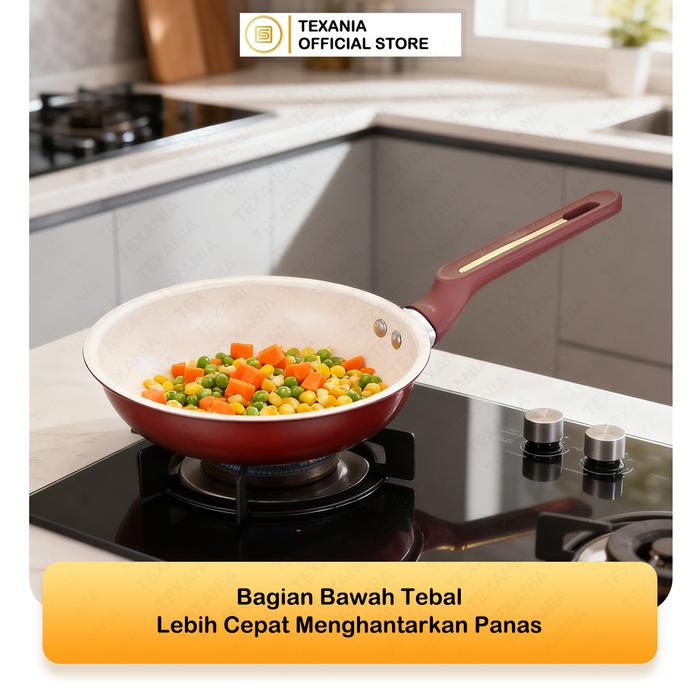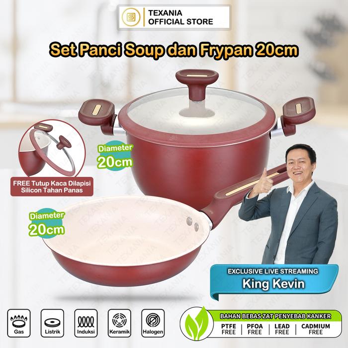 TEXANIA SET Panci Soup dan Frypan Maroon Anti Lengket 20cm Multifungsi Mudah