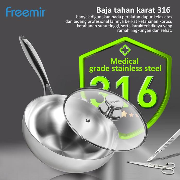 [NEW 2025] freemir Panci Stainless SUS 316 20 Cm 3-Lapis Stainless Anti Karat Panci Penggorengan
