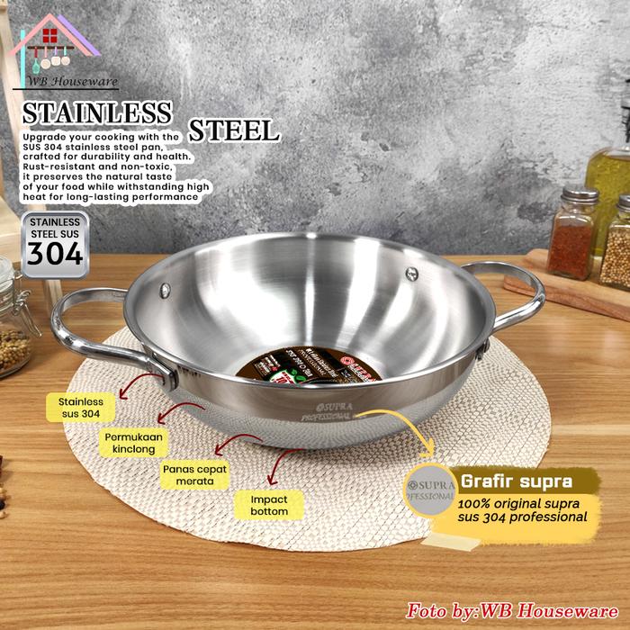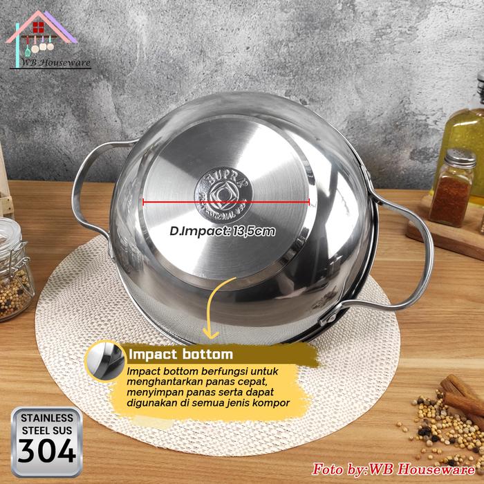 SUPRA wok 24cm + steamer + tutup stainless steel impact SUS 304 professional series / panci wajan