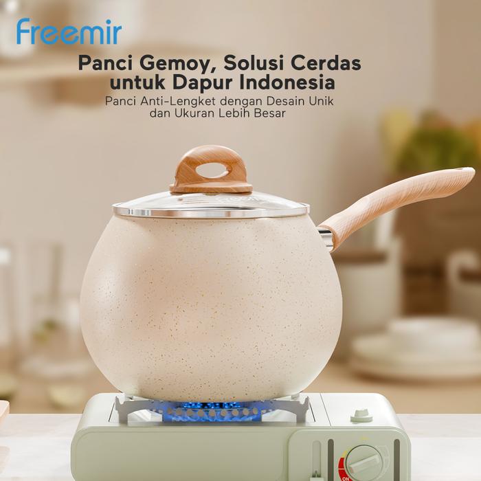freemir Panci Gemoy 16 cm Anti Tumpah Pink/Hitam/Beige Kapasitas 2L Wajan Anti