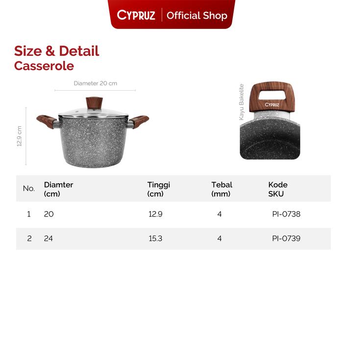 Cypruz Grey Marble High Casserole Pan / Panci Anti Lengket + Tutup 20 cm Kitchenware