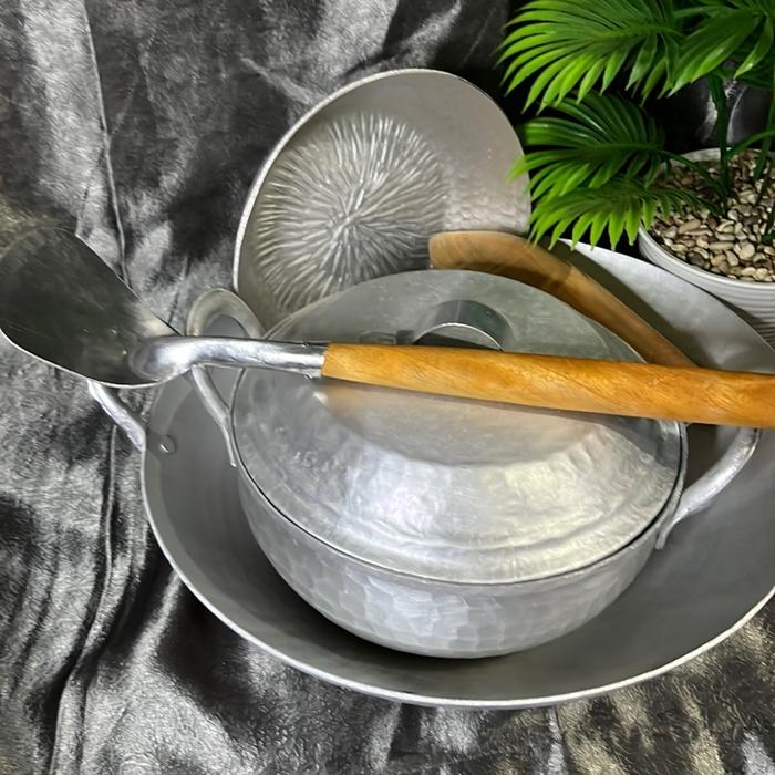 Paket hemat Wajan 29cm,panci sayur 20cm,cobek 17cm ulekan set ,sutil alumunium satu set jadi lebih