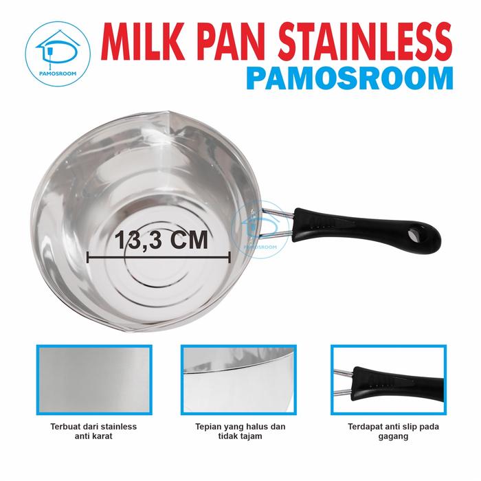 Pamosroom Panci Susu Stainless Panci Mie Rebus auce Pan Gagang Tahan Panas Panci Multifungsi18cm