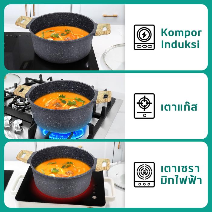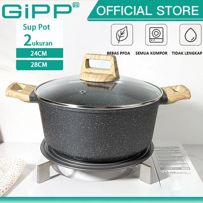 GIPP Panci Sup Anti Lengket Casserole 24/28cm Granit Dilengkapi Tutup Cocok Untuk Semua Kompor