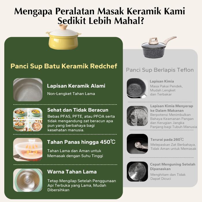 Redchef Panci Sup Casserole Meja Batu Keramik 24Cm Cocok untuk Semua Kompor Termasuk Induksi