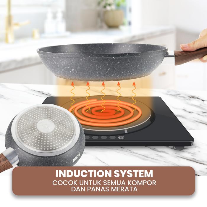 Paket 3in1 Cookware Granit Coated Anti Lengket Handle Bakelite Silikon Anti Leleh Saucepan 18cm Set