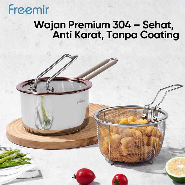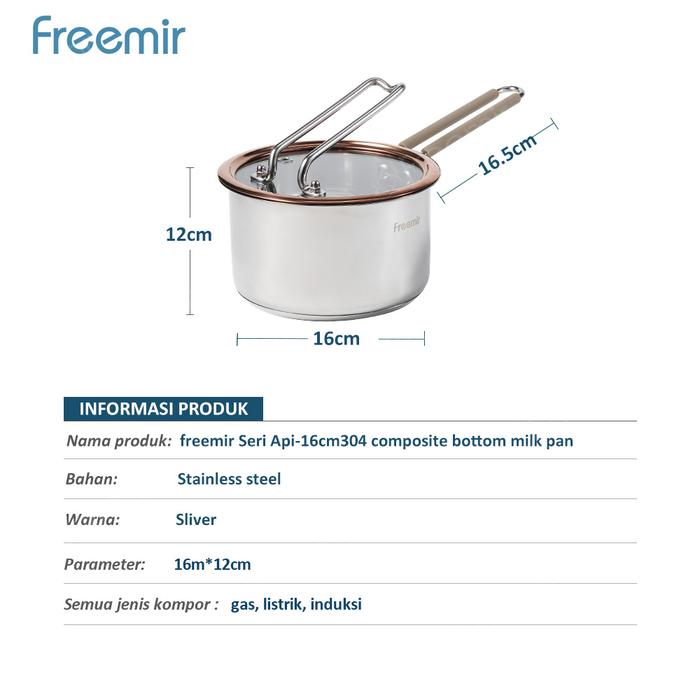 Panci Rebus 16 Cm Stainless Steel 304 Denga Tutup Kaca Tanpa Coating Anti Lengket Lebih