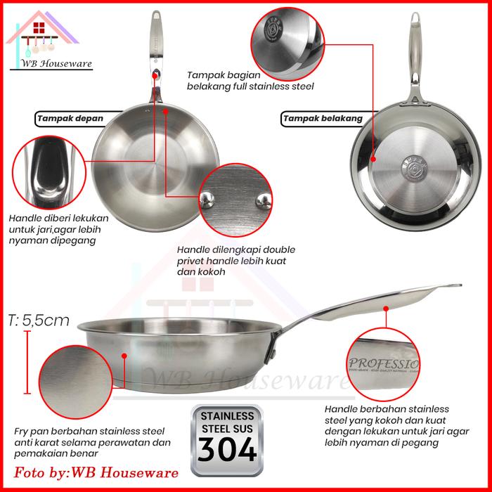 SUPRA panci fry pan 20cm Stainless Steel SUS 304 Impact bottom professional cookware series /