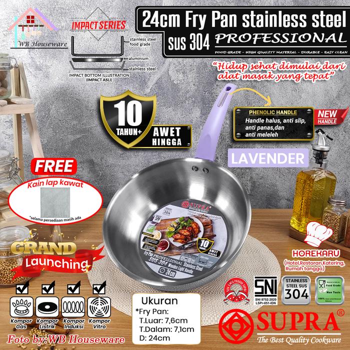 SUPRA Panci Fry pan 24cm stainless SUS 304 professional series handle pastel lavender impact bottom