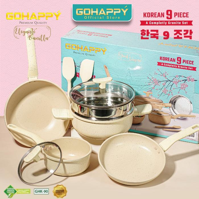 Panci 1 Set Lengkap Gohappy Panci Set Korean 9 piece - Beautiful Pink granite -