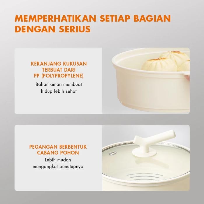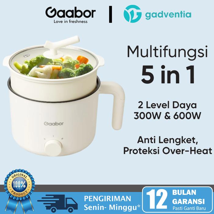 Gaabor Alat Panci Listrik Serbaguna Cooker Electric Anti Lengket Kapasitas 1.5L 600W Kukusan Steamer