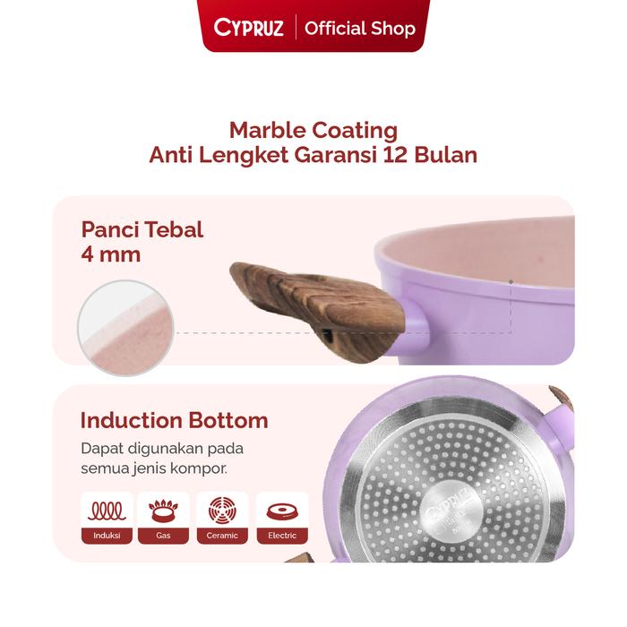 Cypruz Color Marble Panci Anti Lengket + Tutup / Casserole Pan with Lid Kitchenware