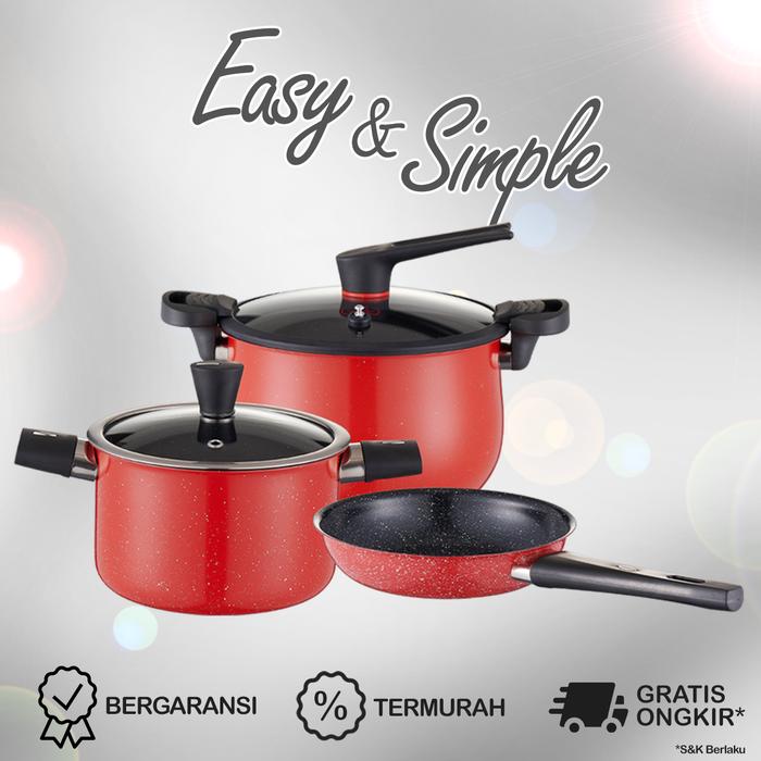 ES Peralatan Masak Isi 3 Complete Set - Panci Presto, Panci Sup, Wajan Penggorengan