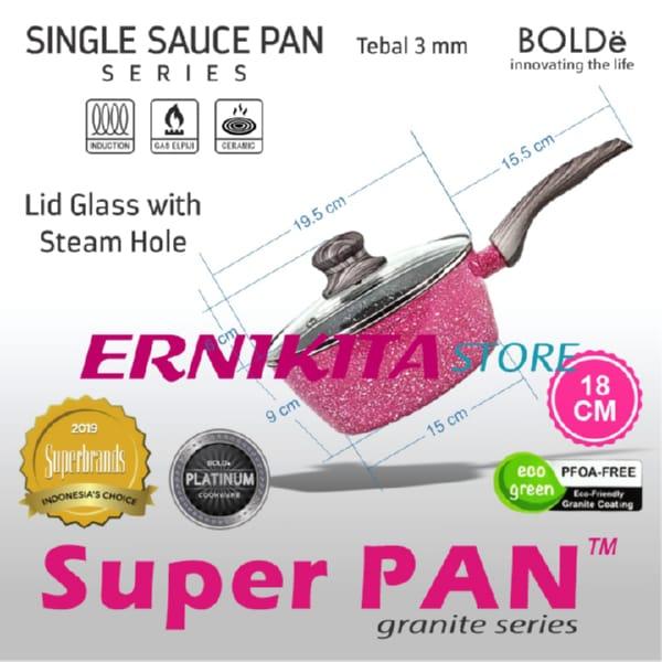 BOLDe SUPER SAUCE PAN BLACK PINK 18cm Panci Rebus Tutup Kaca