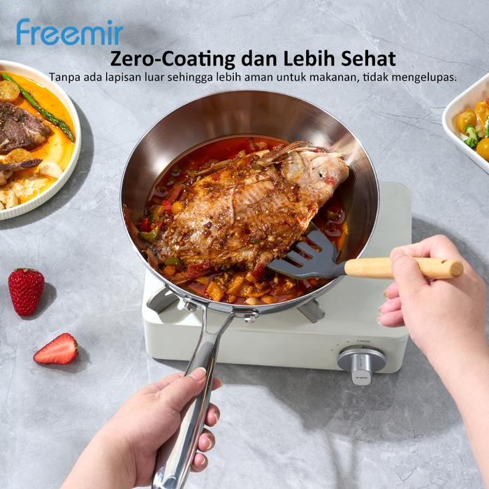 freemir Teflon Tanpa Coating Lebih Sehat 24 cm Stainless 316 Anti Lengket Panas Lebih