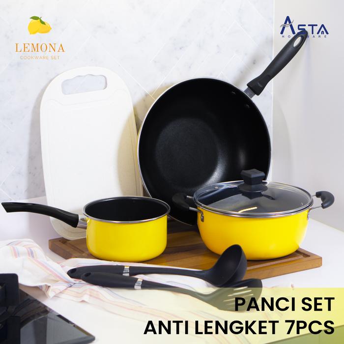 Asta Panci Anti Lengket Tutup Kaca Set Lengkap Lemona 7 pcs Kuning Masak