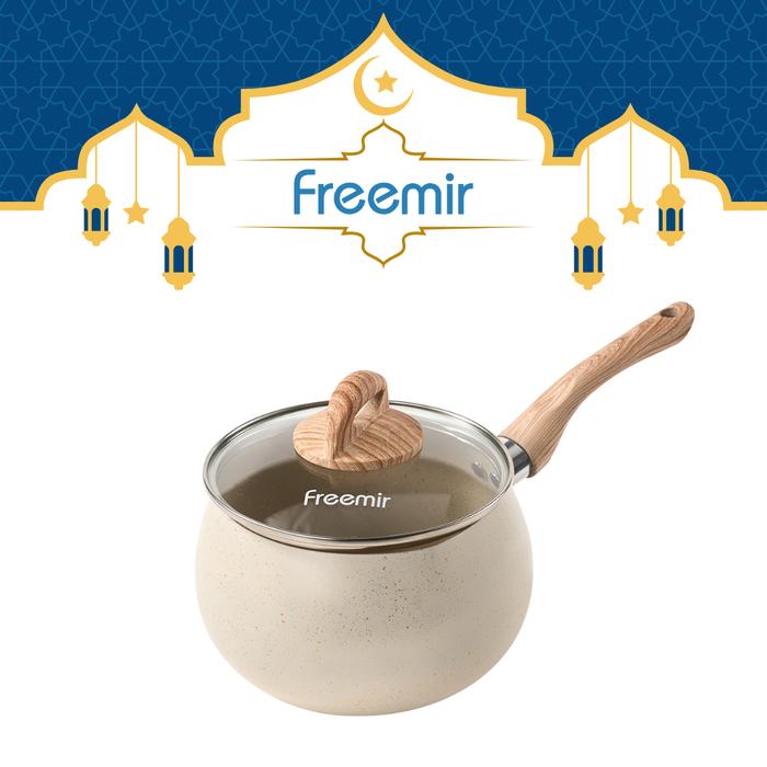 freemir Panci Gemoy Masak Susu Rebus MPASI Anti Lengket Granit Beige Panci Aladin Gagang Kayu Tutup
