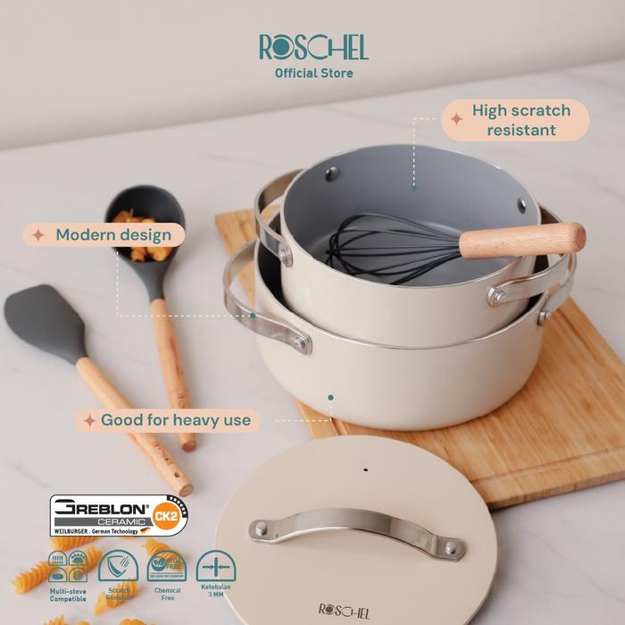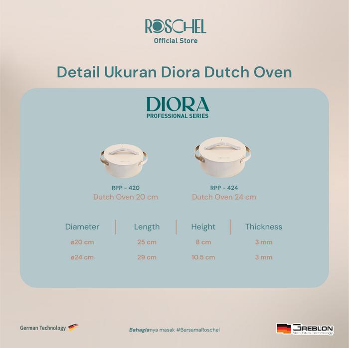 Roschel Diora Professional Dutch Oven 20 cm, 24 cm Ceramic Non-Stick Greblon CK2 German Coating