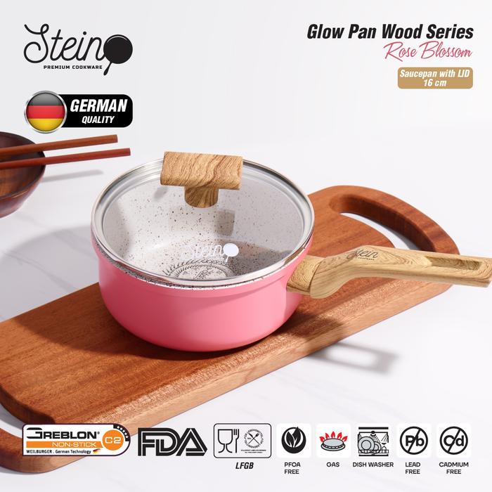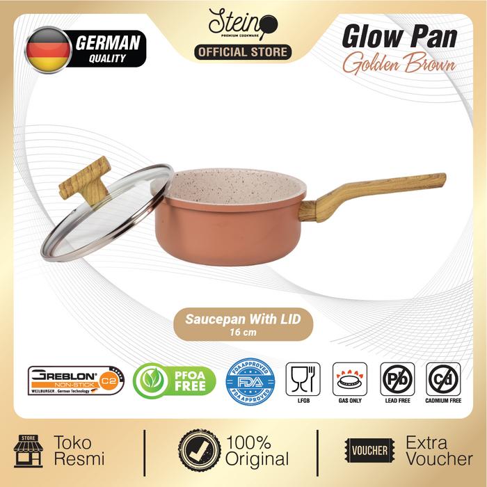 STEIN Glowpan Saucepan 16cm Wood Handle with Lid - Panci Satuan Lapisan Marbel + Tutup