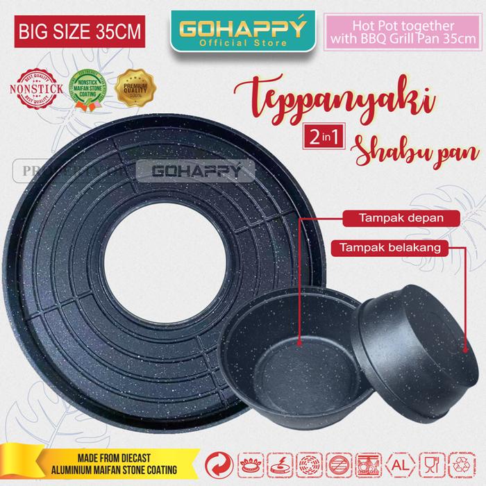 TEPANNYAKI PLATE Grill pan 2 in 1 STEAMBOAT 35CM HOTPOT / SHABU POT Alat pemanggang GOHAPPY ANTI