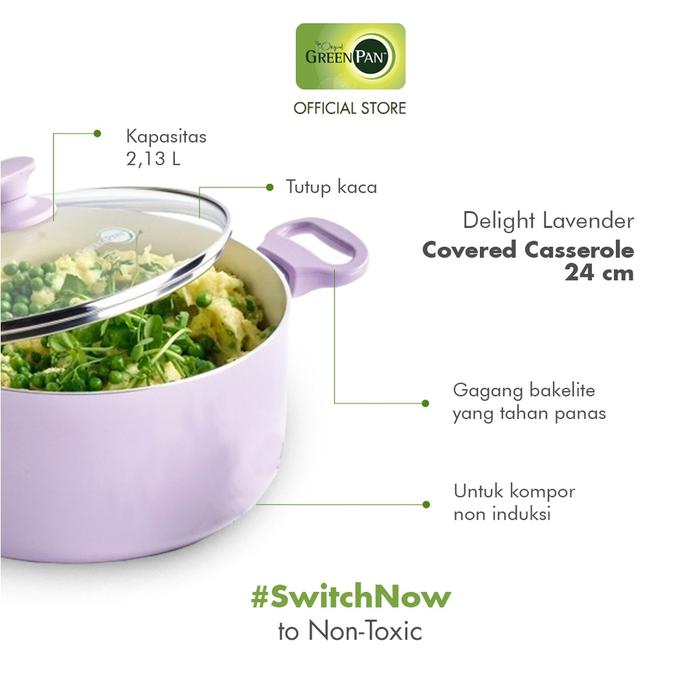 GreenPan Delight Lavender Covered Casserole 24 cm Panci Non Toxic